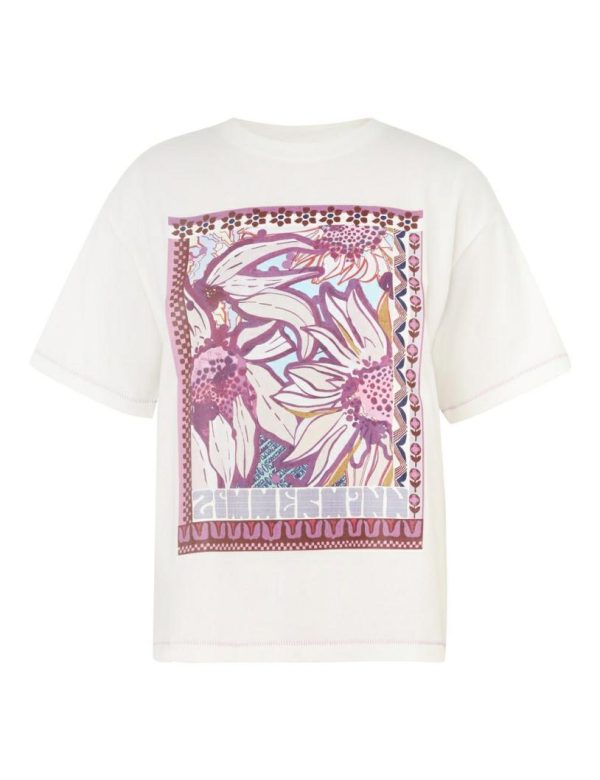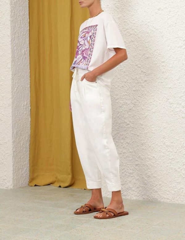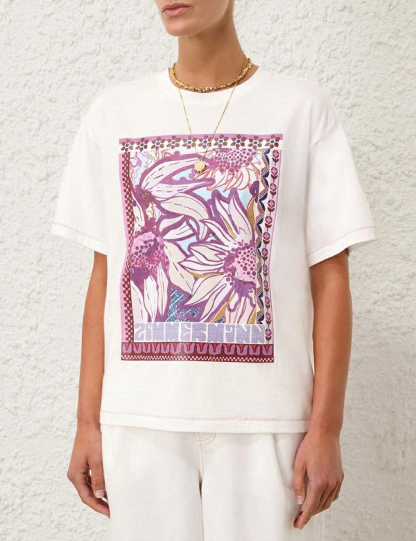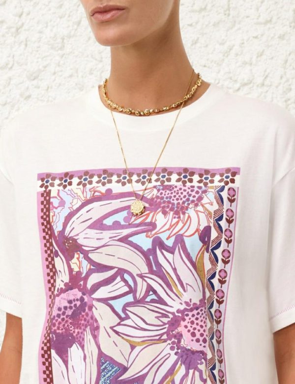 The Acadian Printed Relaxed Tee in Light Cream from our Resort Swim 2024 Collection. A cotton tee featuring a Zimmermann print.