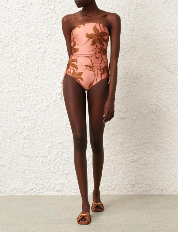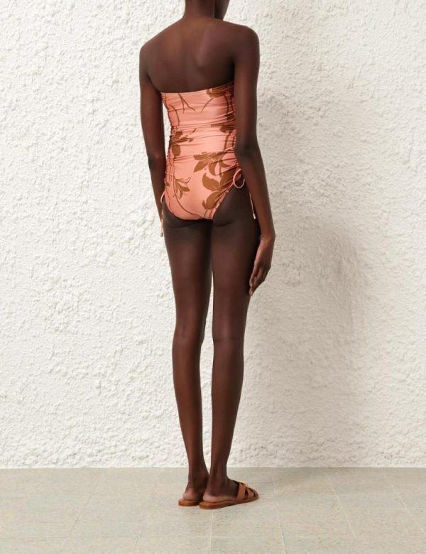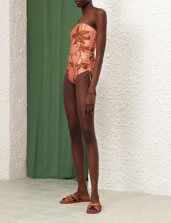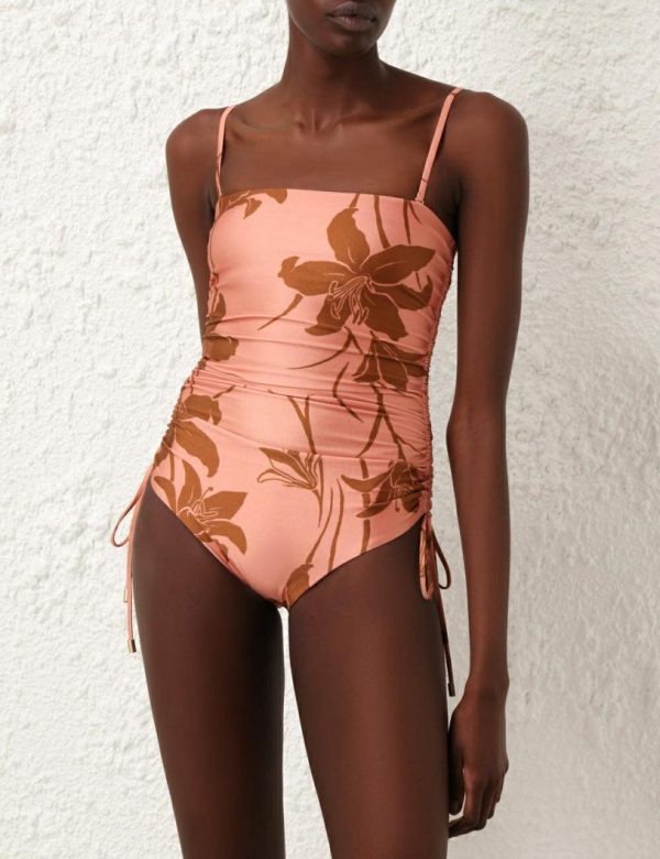 Zimmermann Acadian Ruched Side PC Coral/tan Floral | Women One Pieces