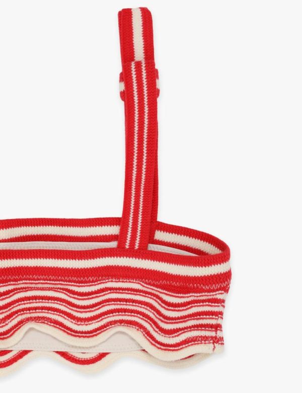 The Alight Crochet Wave Bikini in Red Floral from our Resort Swim 2024 Collection. A wavy crochet bikini with shoulder bows.