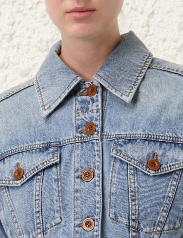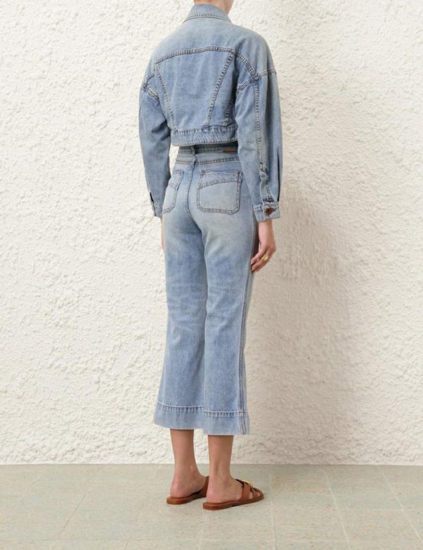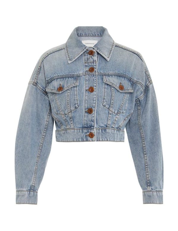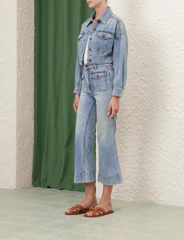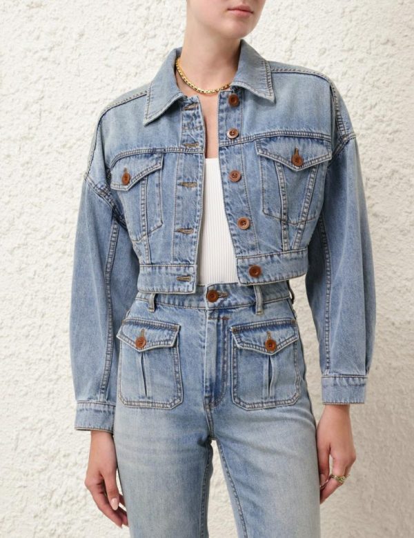 The Alight Cropped Denim Jacket in Faded Blue from our Resort Swim 2024 Collection. A denim cropped jacket featuring a front pocket flap and a centre front closure.