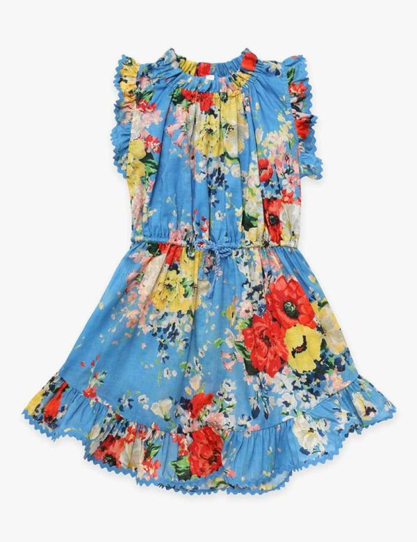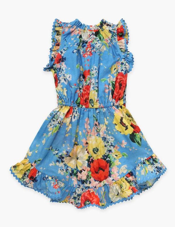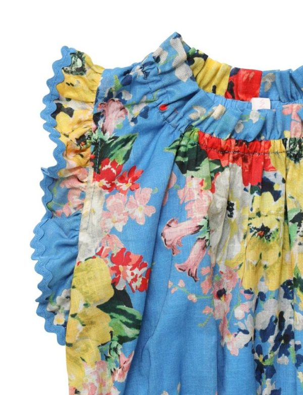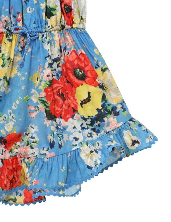 The Alight Flip Dress in Blue Floral from our Resort Swim 2024 Collection. A cotton flip dress featuring a playful flip hem with gathered frill neckline and sleeves.