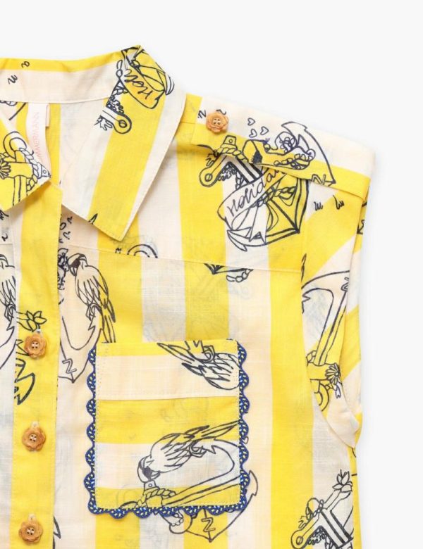 Zimmermann Alight Pocket Shirt Yellow/cream Stripe | Kids Clothing