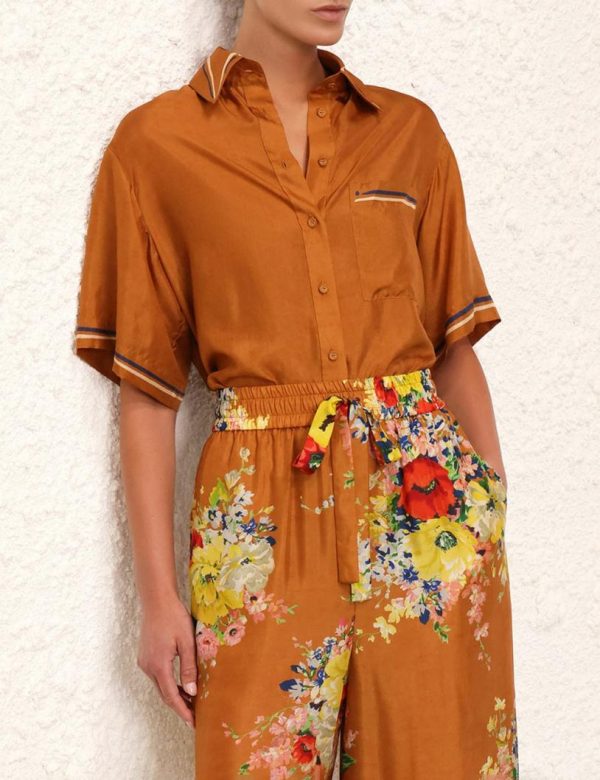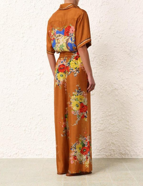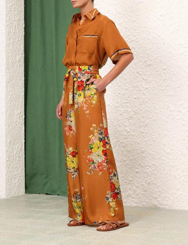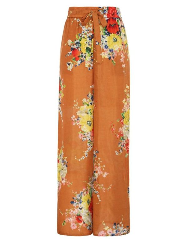 The Alight Relaxed Pant in Tan Floral from our Resort Swim 2024 Collection. A silk wide leg pant featuring a drawcord waistband.