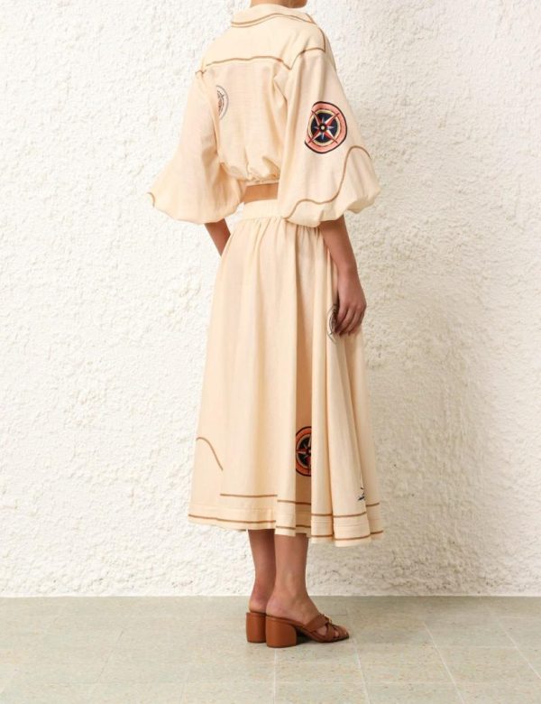 The Alight Swing Skirt in Beige from our Resort Swim 2024 Collection. A cotton swing midi skirt featuring an elasticated waistband and side seam pockets.