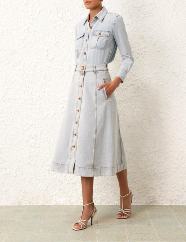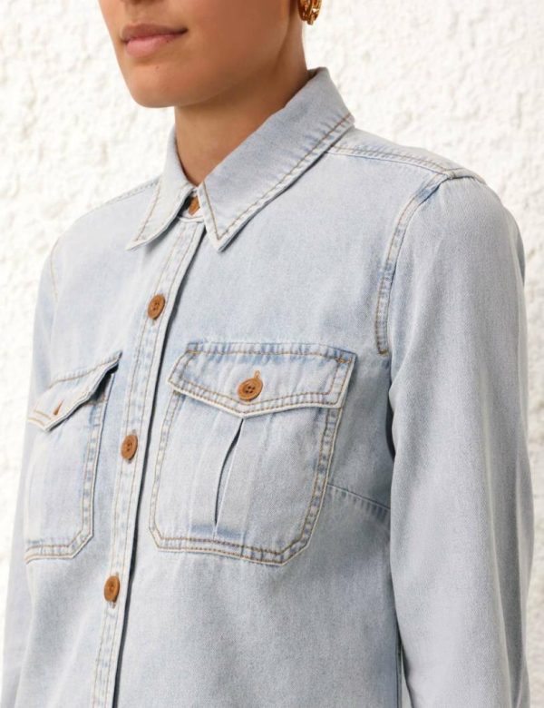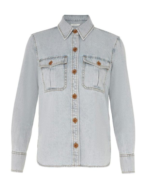 Zimmermann August Denim Body Shirt Storm Blue | Women Tops