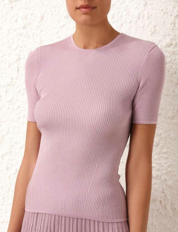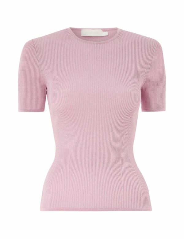 Zimmermann August Rib T-Shirt Dusty Pink Lurex | Women Tops