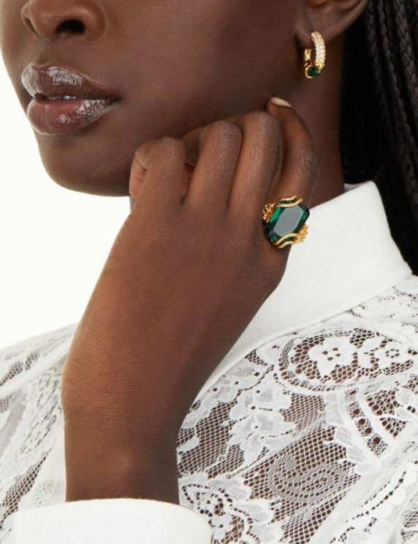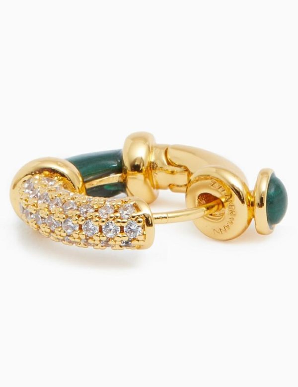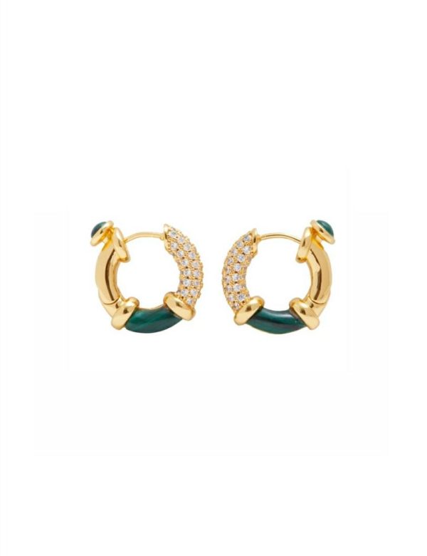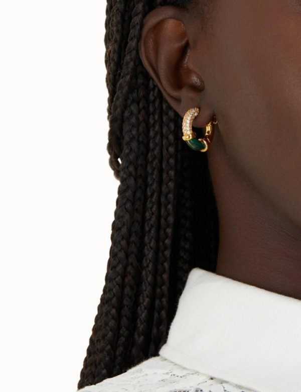 The Boltlock Stone Earrings in Gold/Malachite from our Spring 2023 Collection, Wonderland. Gold plated earrings featuring semi precious and cubic zirconia stones throughout.
