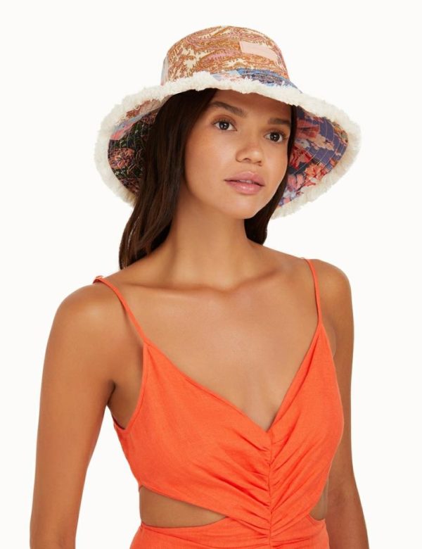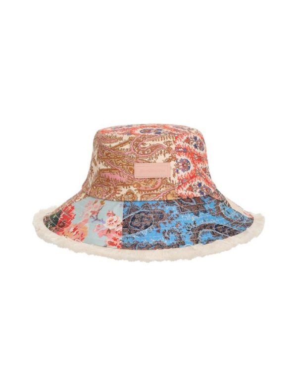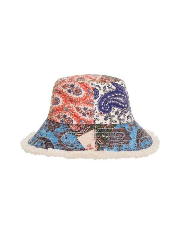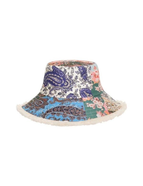 The Bucket Hat in Patch Paisley from our Summer Swim 2023 Collection. A linen bucket hat featuring topstitching around the brim and ventilation in the crown.