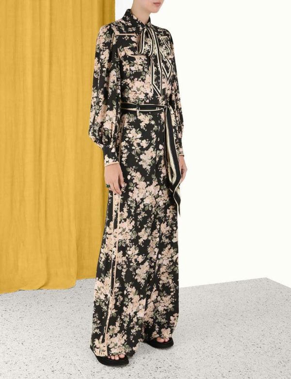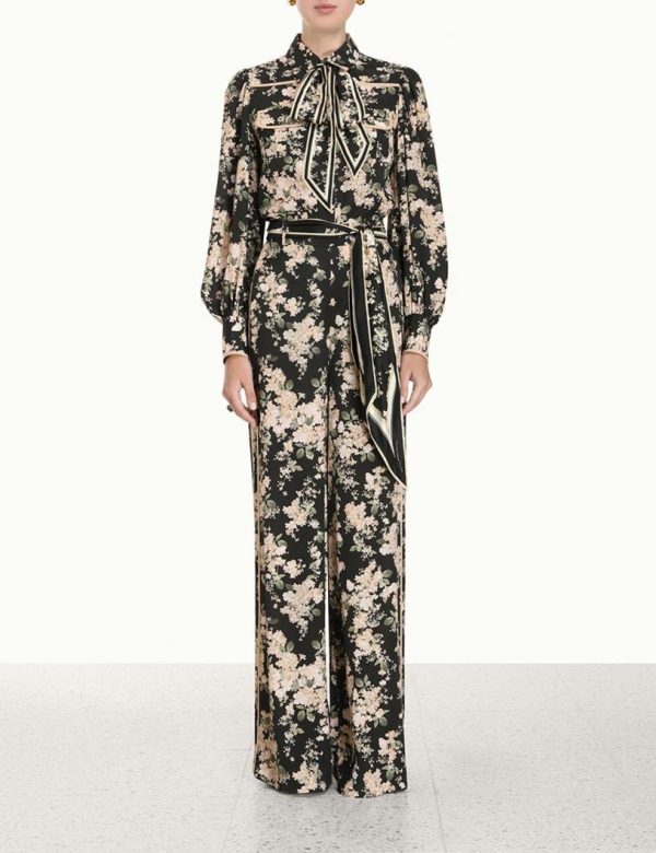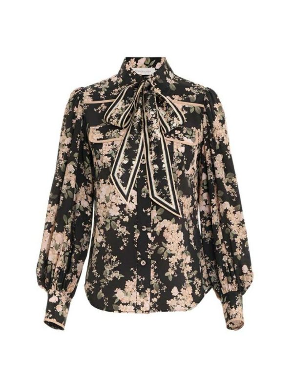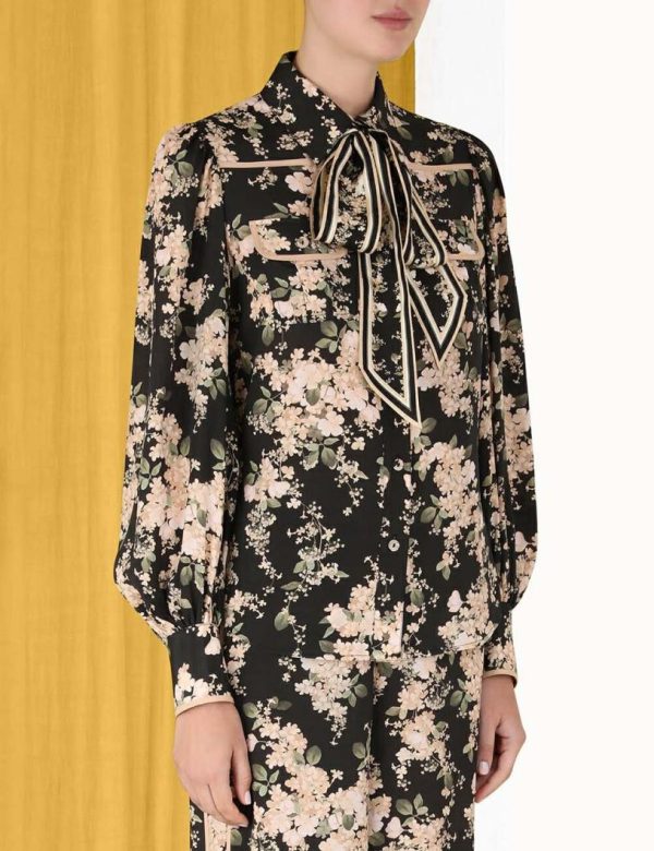 The Buttoned Shirt in Black Ivory Floral from our Fall 2023 Collection, Luminosity. A long sleeve blouse featuring front patch pockets and a contrast bind.