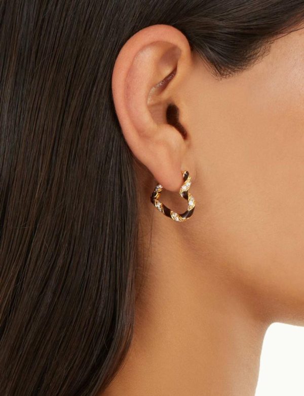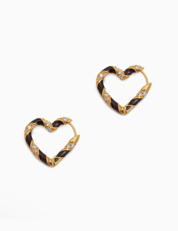 The Candy Stripe Pave Heart Hoops in Gold/Bordeaux from our Spring 2023 Collection, Wonderland. A gold plated heart shaped hoop earring featuring cubic zirconia stones throughout.