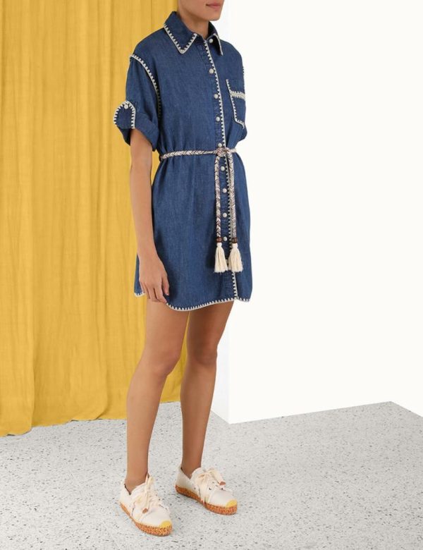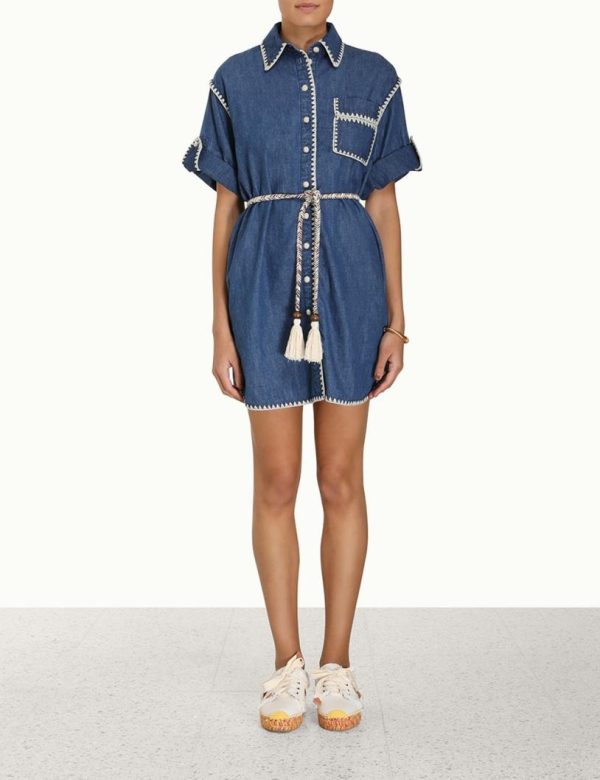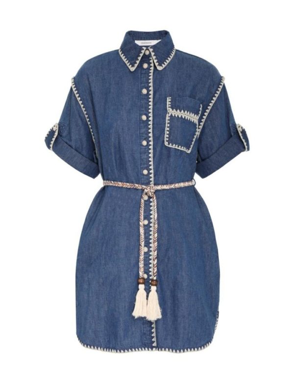 Zimmermann Chintz Mini Shirt Dress Bay Blue | Women Denim