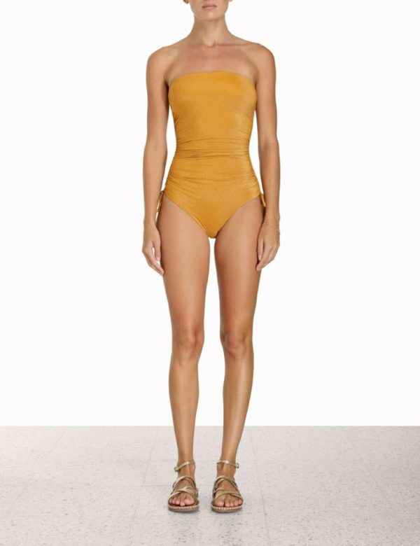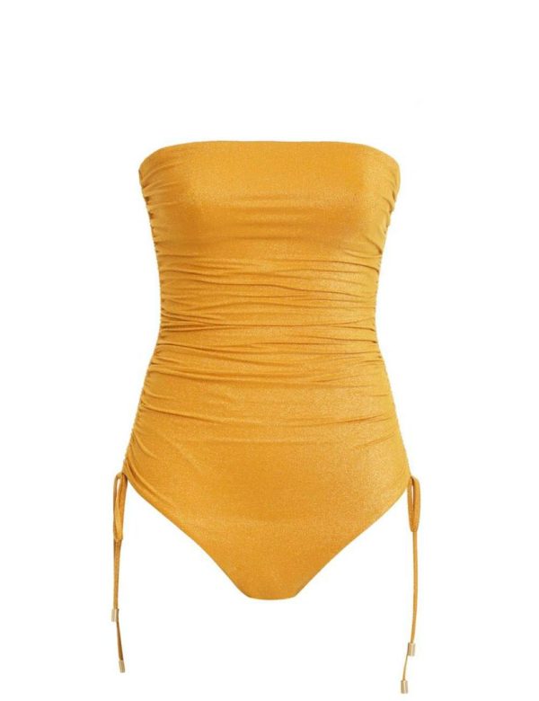 The Chintz Ruched Side 1PC in Honey from our Summer Swim 2023 Collection. A lycra one piece featuring ruched sides, a shelf bra, gripper elastic along the chest and detachable straps.