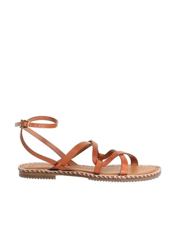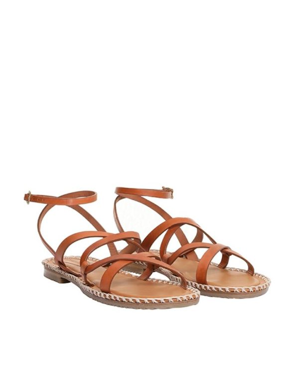 The Criss-Cross Sandal in Tan from our Summer Swim 2023 Collection. A leather sandal featuring criss-crossed straps and buckle ankle fastening.
