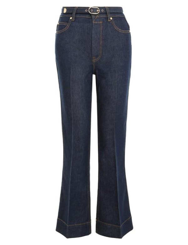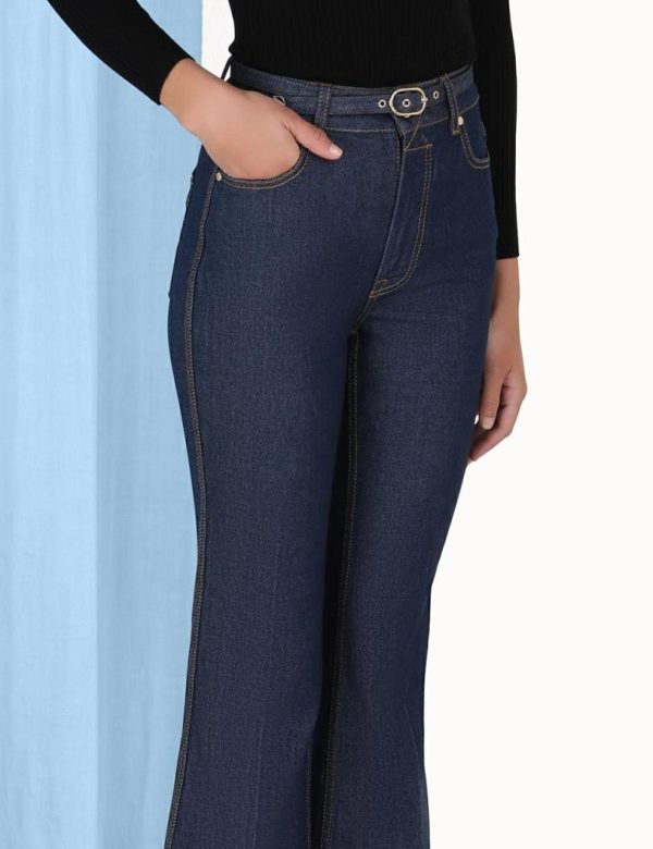 The Cropped Flare Jean in Ink from our Fall 2023 Collection, Luminosity. A cropped denim jean featuring a high waisted, flare silhouette and a removable belt.