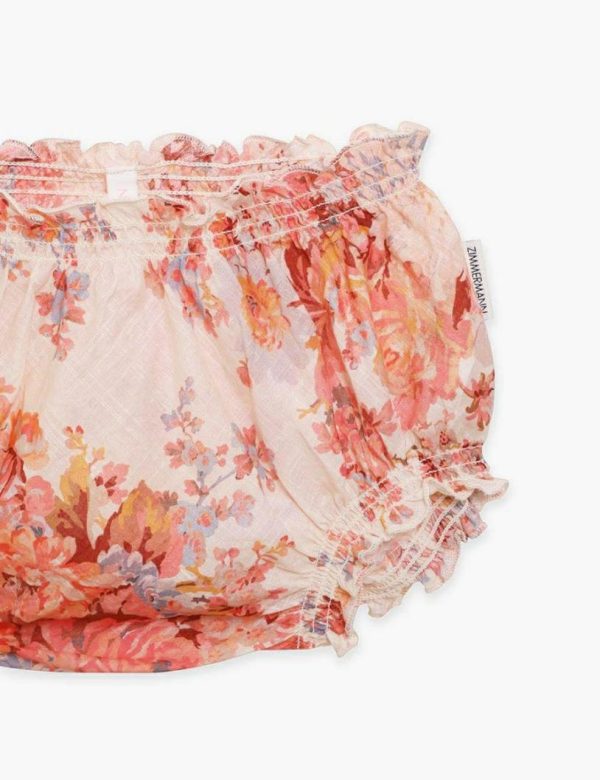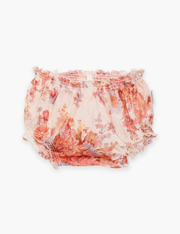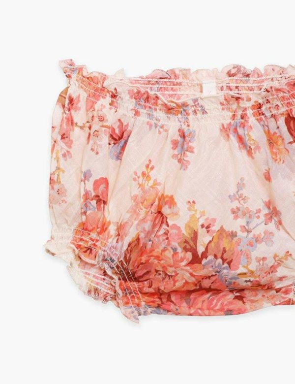 The Devi Bloomer in Cream Floral from our Summer Swim 2023 Collection. A cotton bloomer with elastic trims and frilled edges.