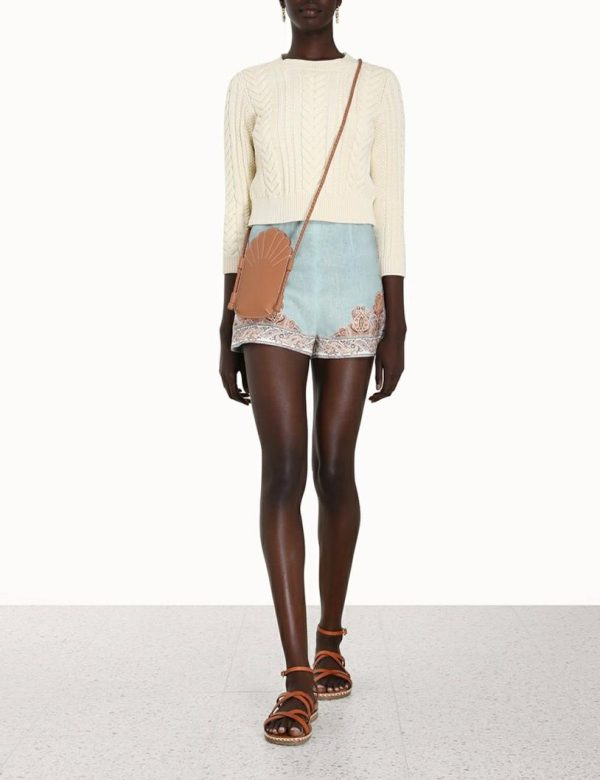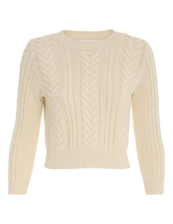 The Devi Cable Knit Top in Cream from our Summer Swim 2023 Collection. A short sleeve top featuring a cable knit throughout.
