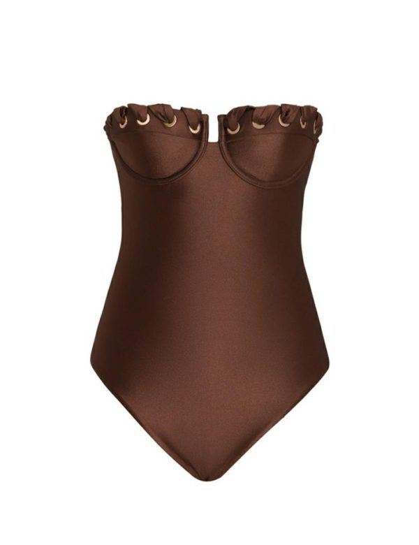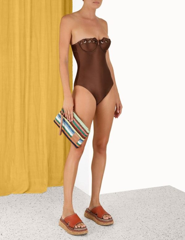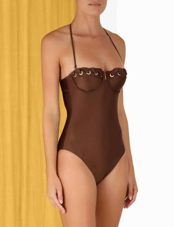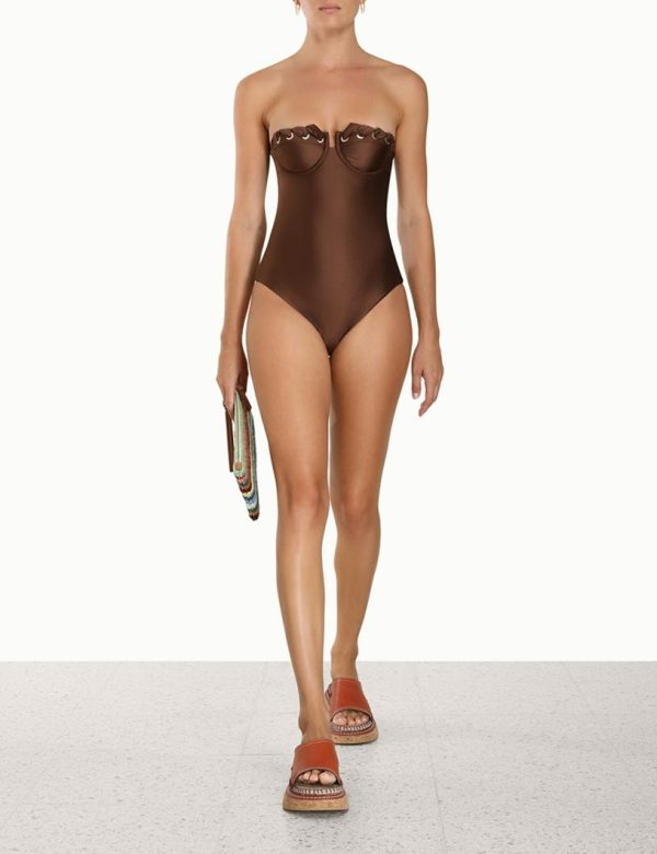 Zimmermann Devi Eyelet Balconette PC Chocolate | Women One Pieces