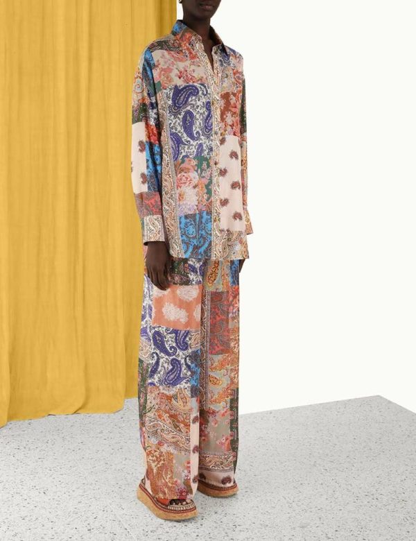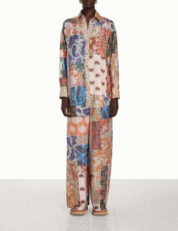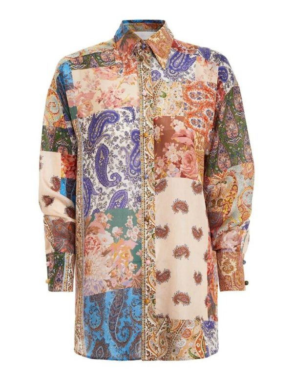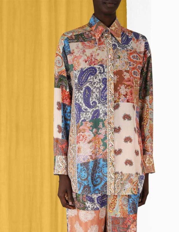 The Devi Manstyle Shirt in Patch Paisley from our Summer Swim 2023 Collection. A silk habotai shirt featuring a classic collar and centre front button closure.