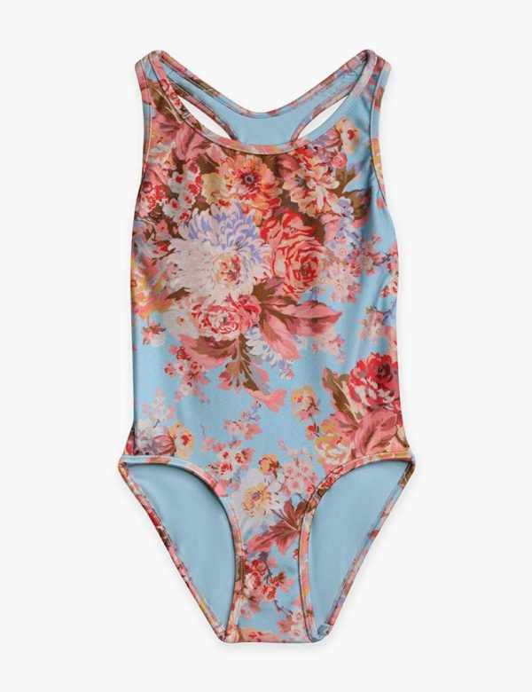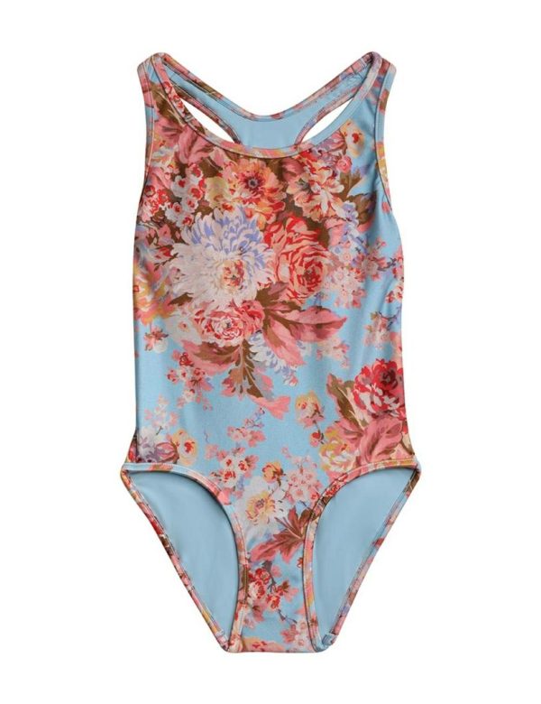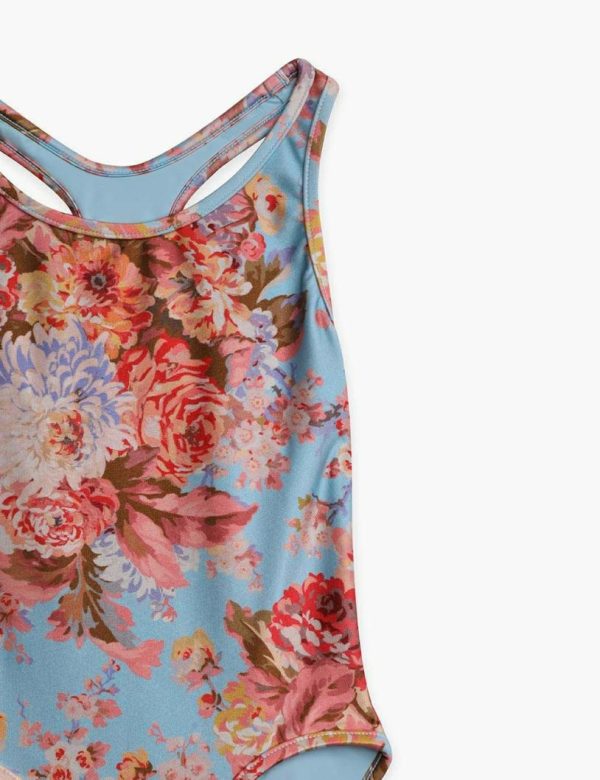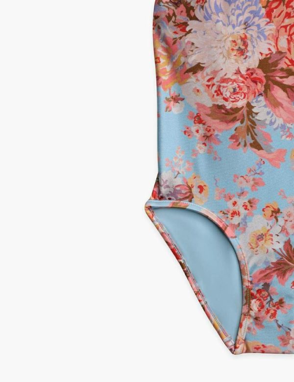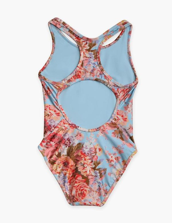 The Devi Racer 1PC in Teal Floral from our Summer Swim 2023 Collection. A lycra one piece featuring a racer back and cut out.