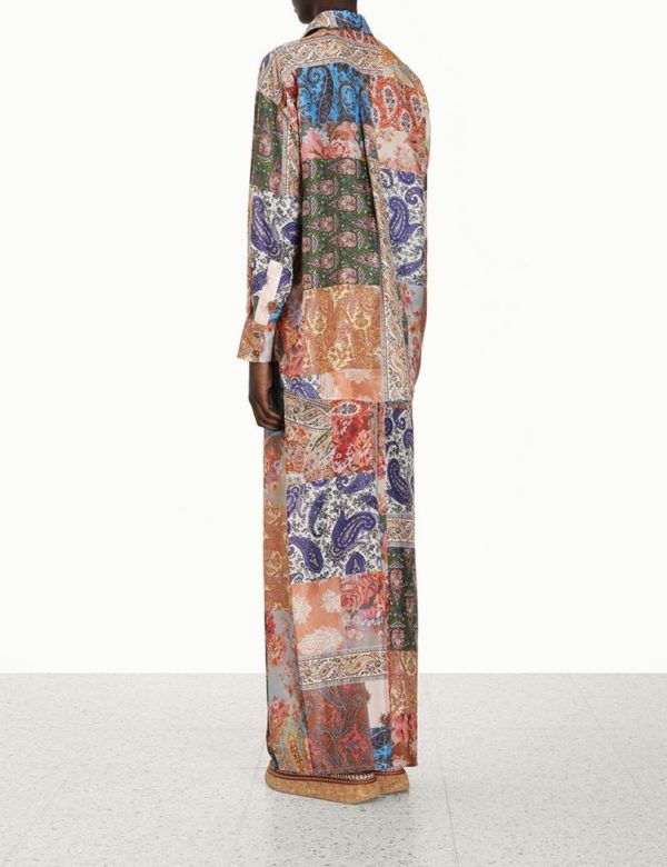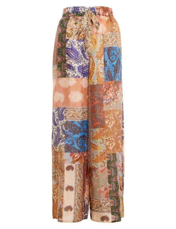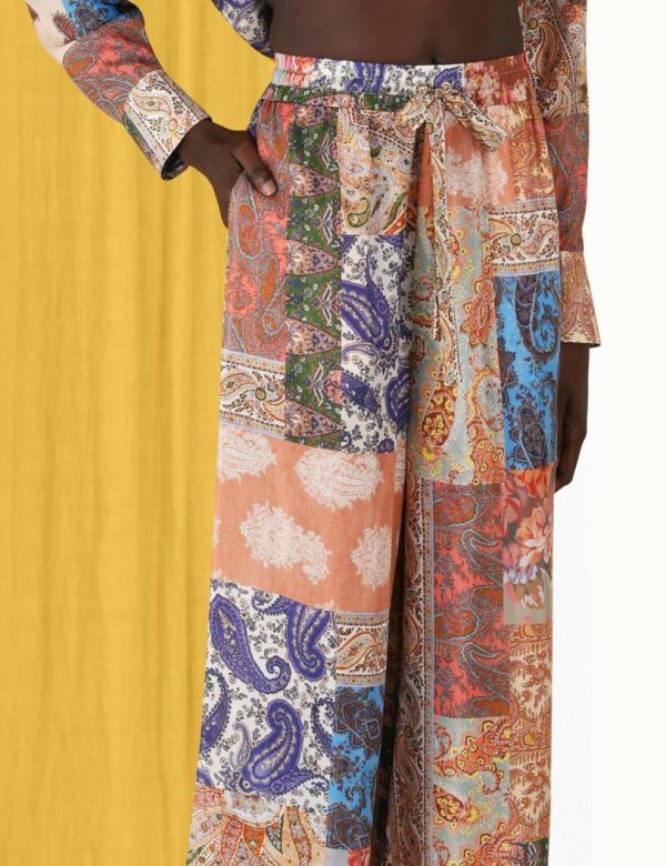 The Devi Relaxed Pant in Patch Paisley from our Summer Swim 2023 Collection. A silk wide leg pant featuring a draw string elasticated waist band.