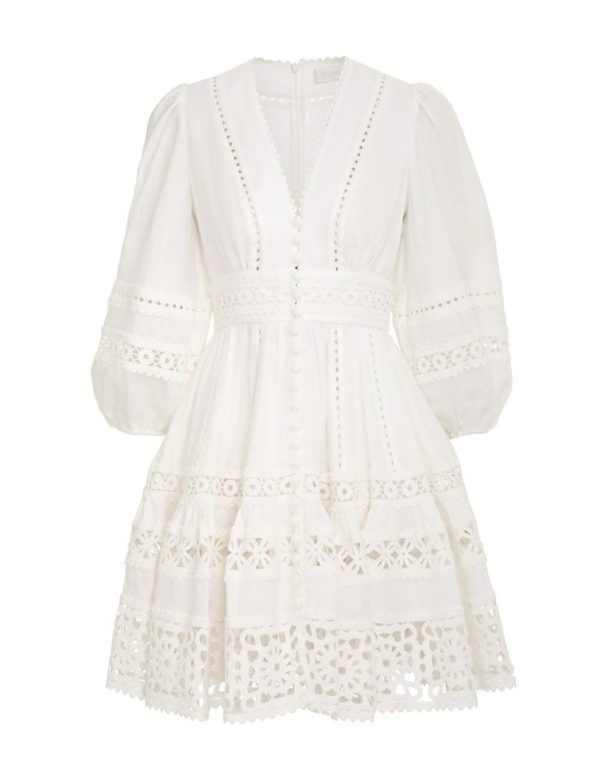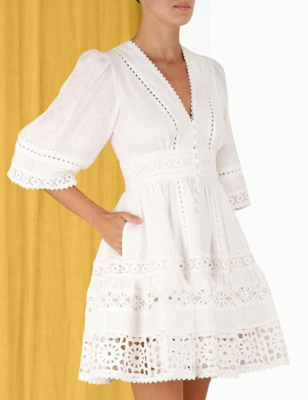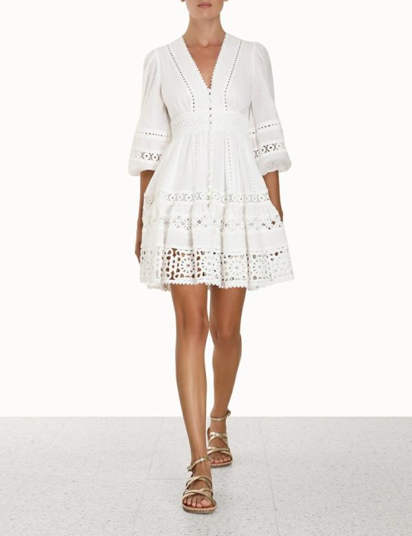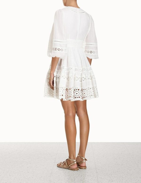 Zimmermann Devi Spliced Billow Mini Dress Ivory | Women Clothing