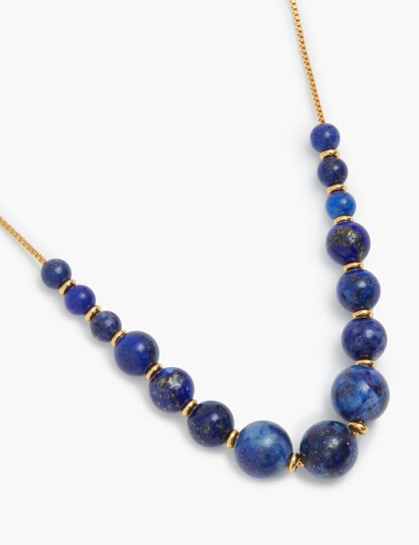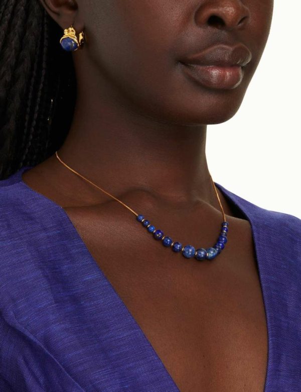 The Fine Lapis Sphere Necklace in Gold/Lapis from our Spring 2023 Collection, Wonderland. A gold plated chain necklace featuring semi-precious stones throughout.