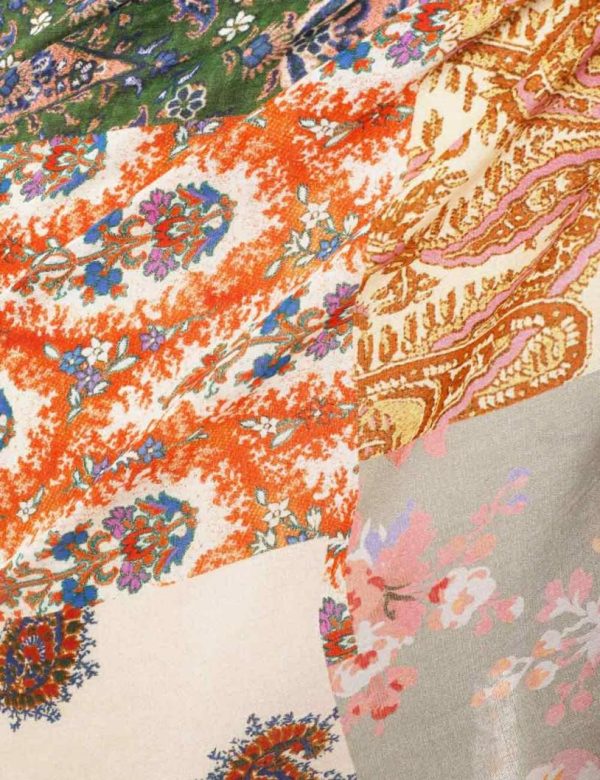The Fringe Cotton Pareo in Patch Paisley from our Summer Swim 2023 Collection. A large rectangle pareo featuring frayed edges and a placement print throughout.