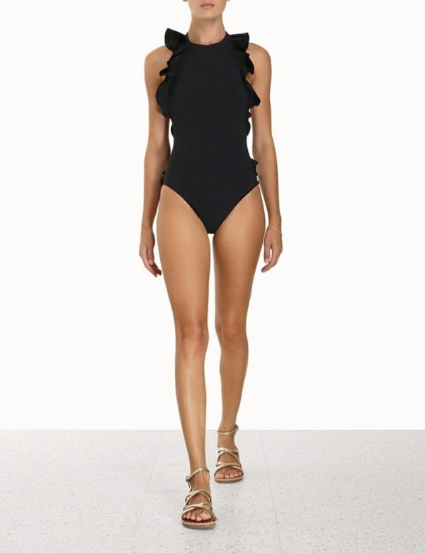 Zimmermann Ginger Racer Back Frill PC Noir | Women One Pieces