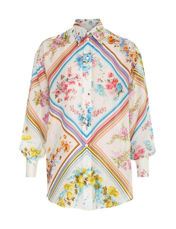 The Halcyon Relaxed Shirt in Multi from our Summer Swim 2023 Collection. A silk habotai shirt featuring a classic collar, drop shoulders and buttoned cuffs.