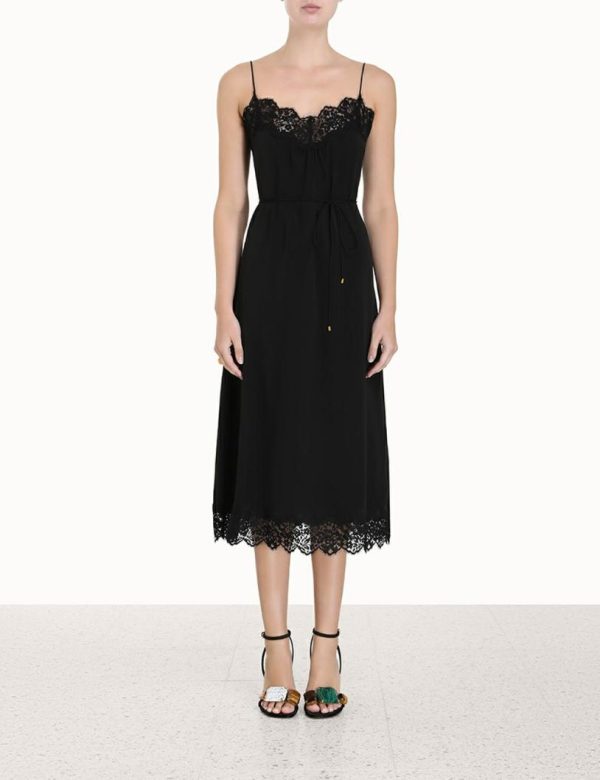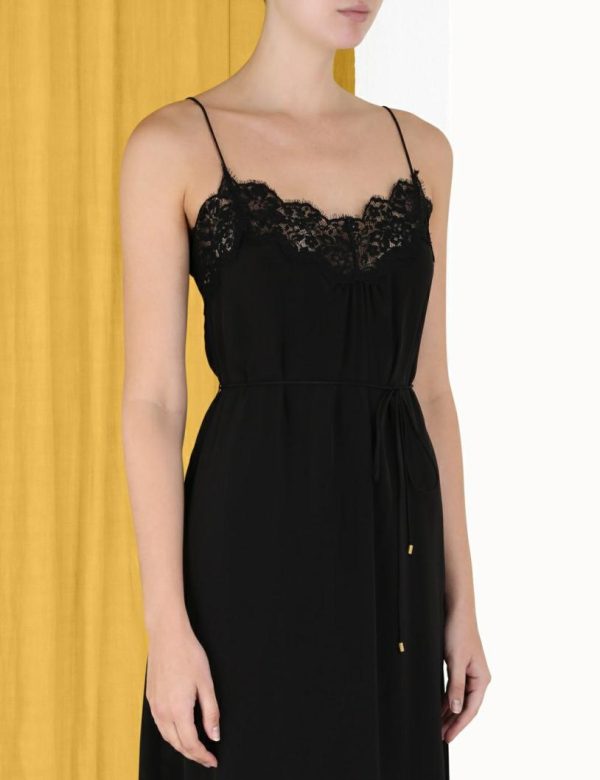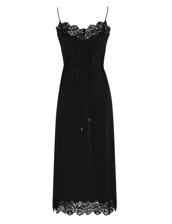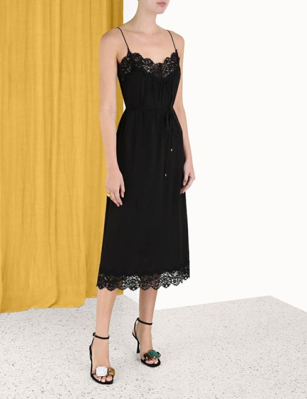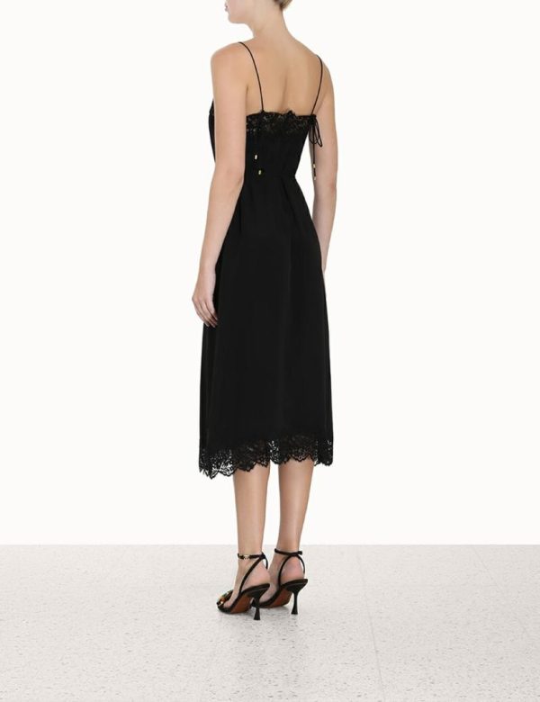 The Lace Panel Slip Midi in Black from our Fall 2023 Collection, Luminosity. A slip midi dress constructed from lace panels.