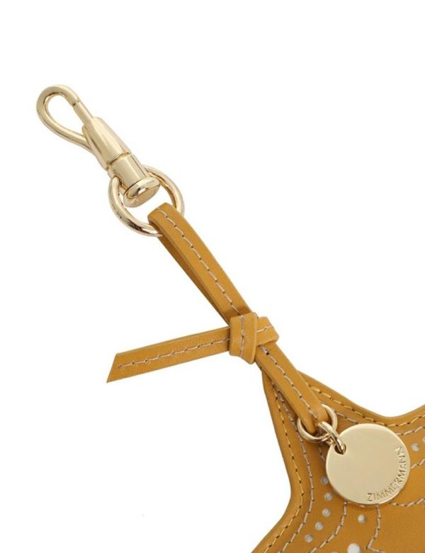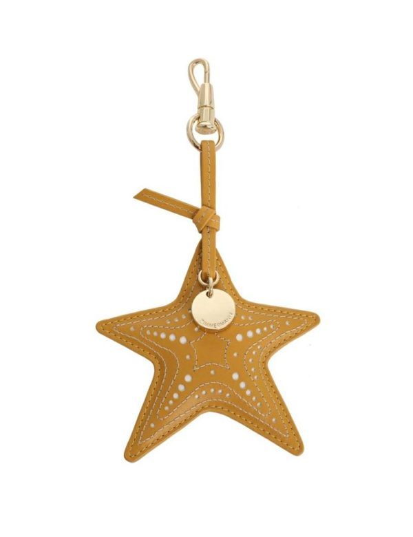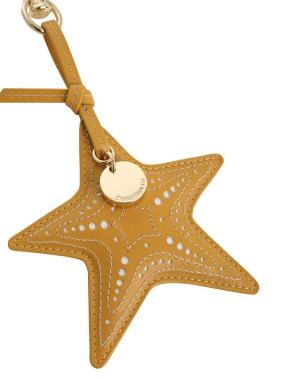 The Leather Starfish Key Charm in Mustard from our Summer Swim 2023 Collection. A keychain featuring a leather starfish with gold plated hardware and perforations throughout.