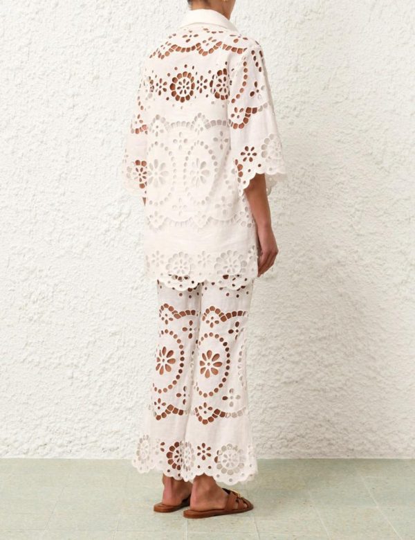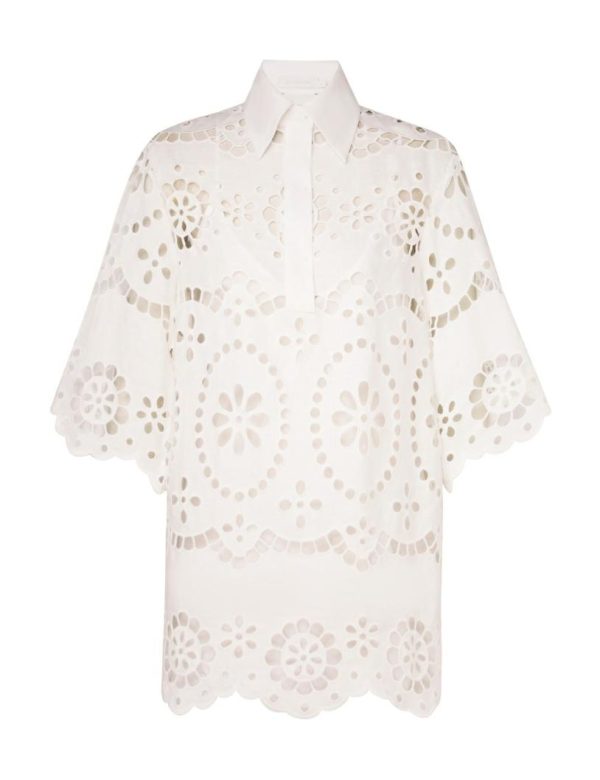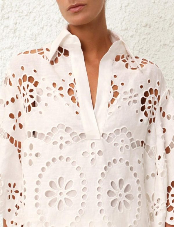 The Lexi Embroidered Tunic in Ivory from our Resort Swim 2024 Collection. A linen long sleeve tunic featuring placement embroidery.