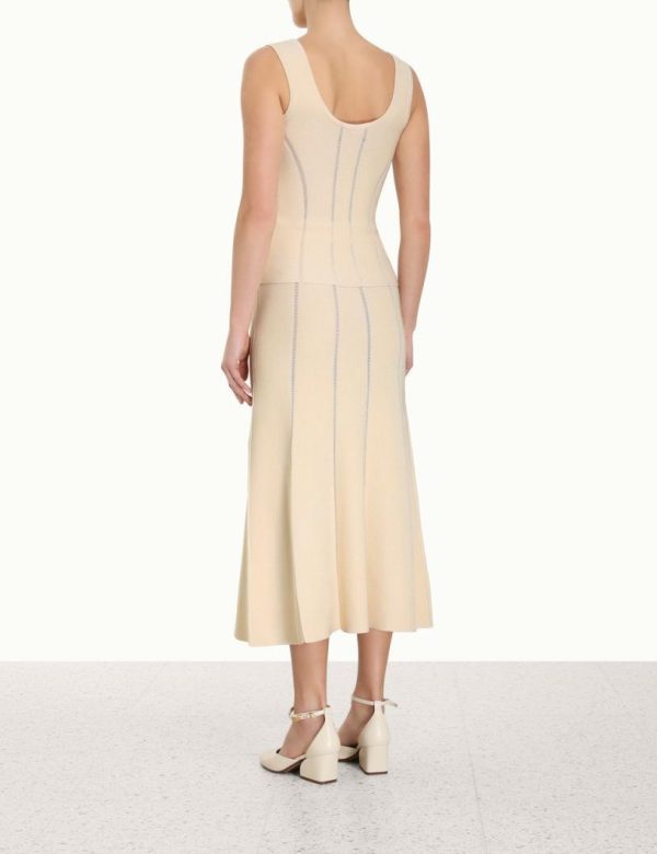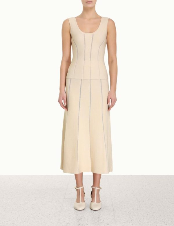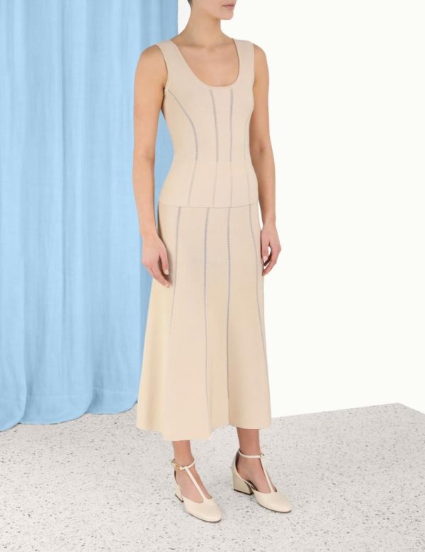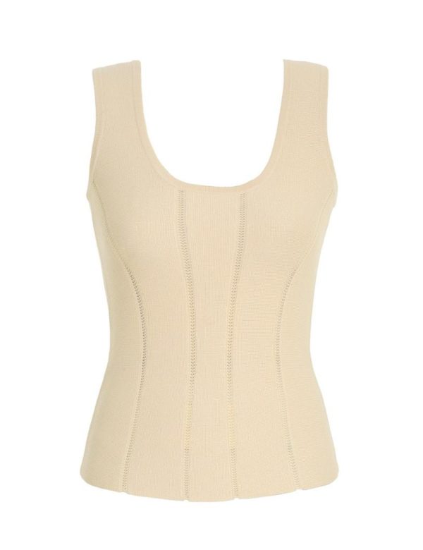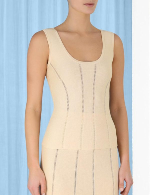The Luminosity Knit Panelled Tank in Cream from our Fall 2023 Collection, Luminosity. A knit tank featuring a pointelle stitch detail throughout.