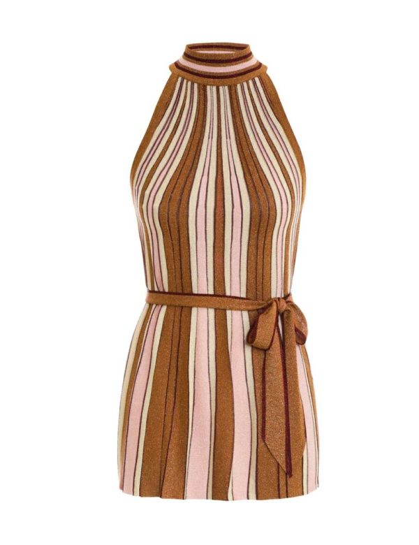 The Luminosity Lurex Halter Top in Multi from our Fall 2023 Collection, Luminosity. A slip on knit top with lurex thread throughout finished with a detachable waist tie.