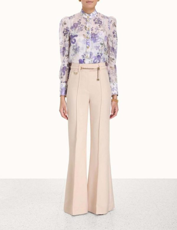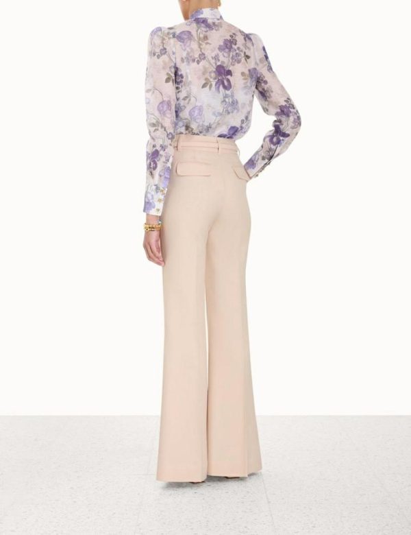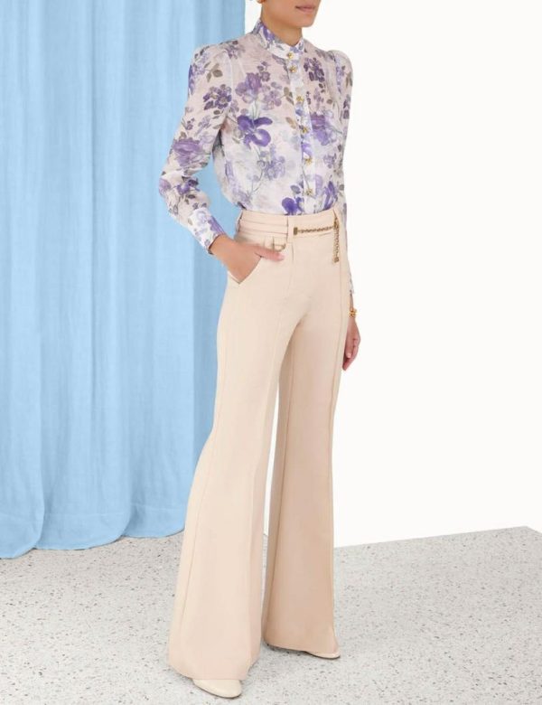 The Lyrical Wide Leg Pant in Macadamia from our Fall 2023 Collection, Luminosity. A wool blend wide leg pant featuring centre front pintucks and front angled pockets.
