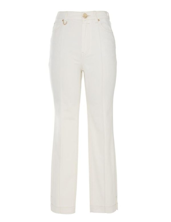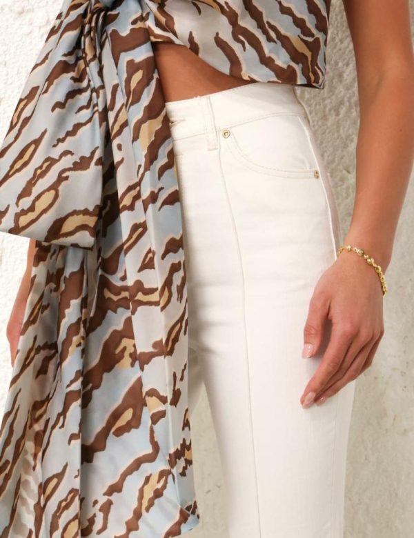 The Matchmaker Capri Jean in Milk from our Resort 2024 Collection, Matchmaker. A denim capri jean featuring a high waisted, tapered silhouette and contrast topstitching throughout.
