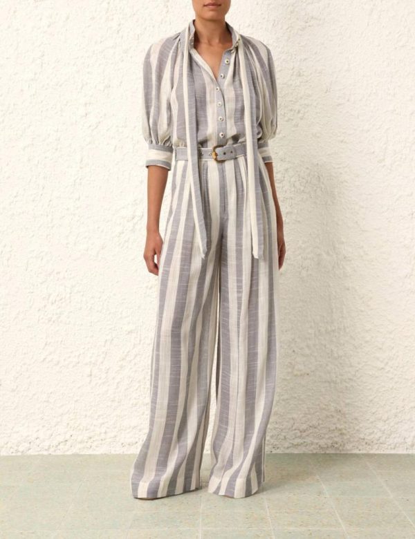 Zimmermann Matchmaker Swing Blouse Blue/cream Stripe | Women Tops