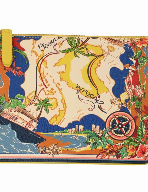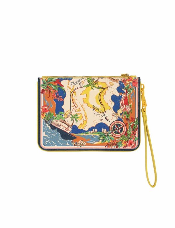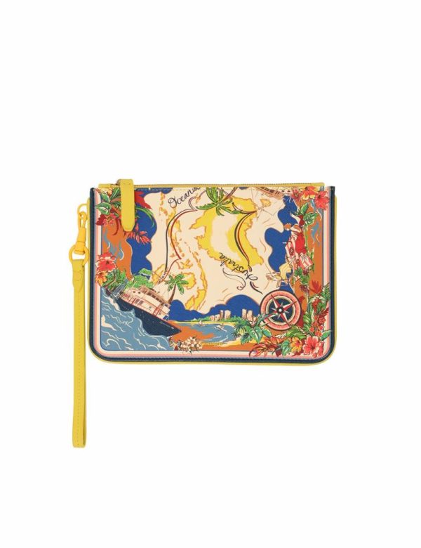 The Medium Printed Leather Pouch in Nautical Map from our Resort 2024 Collection. A saffiano leather pouch with a wrist handle.
