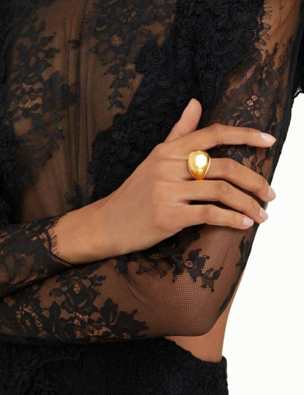 The Pebble Ring in Gold from our Fall 2023 Collection, Luminosity. A gold plated ring featuring cubic zirconia stones throughout.