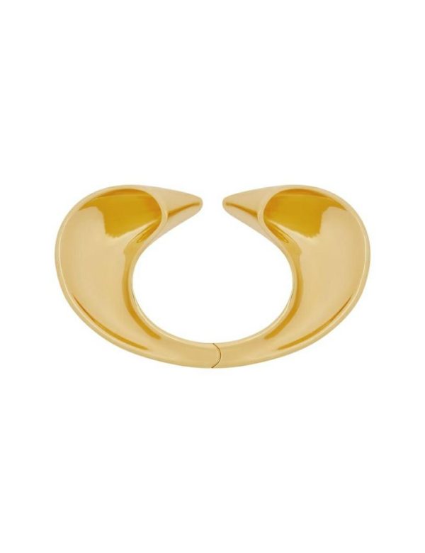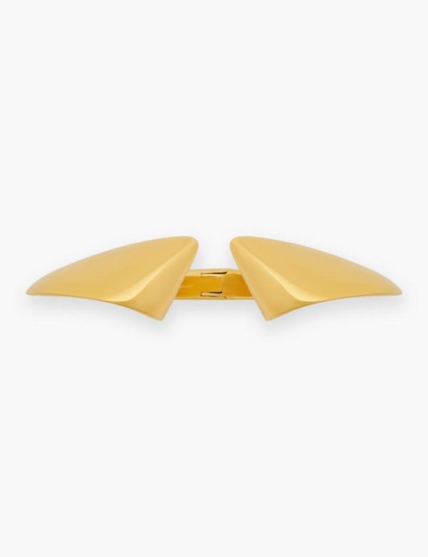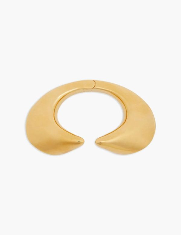 The Pleat Cuff in Gold from our Fall 2023 Collection, Luminosity. A gold plated wrist cuff featuring oversized, curved ends.