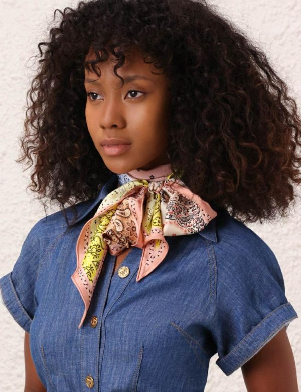 The Printed Silk Neck Scarf in Bandana Patch Print from our Resort 2024 Collection, Matchmaker. A silk neck scarf featuring a customised placement print and fine rolled hem.