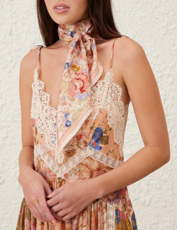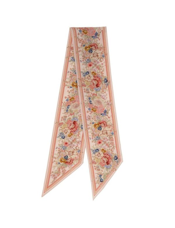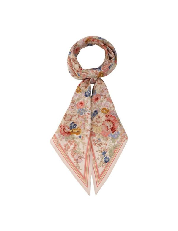 The Printed Silk Neck Scarf in Cream Floral from our Resort 2024 Collection, Matchmaker. A silk neck scarf featuring a customised placement print and fine rolled hem.