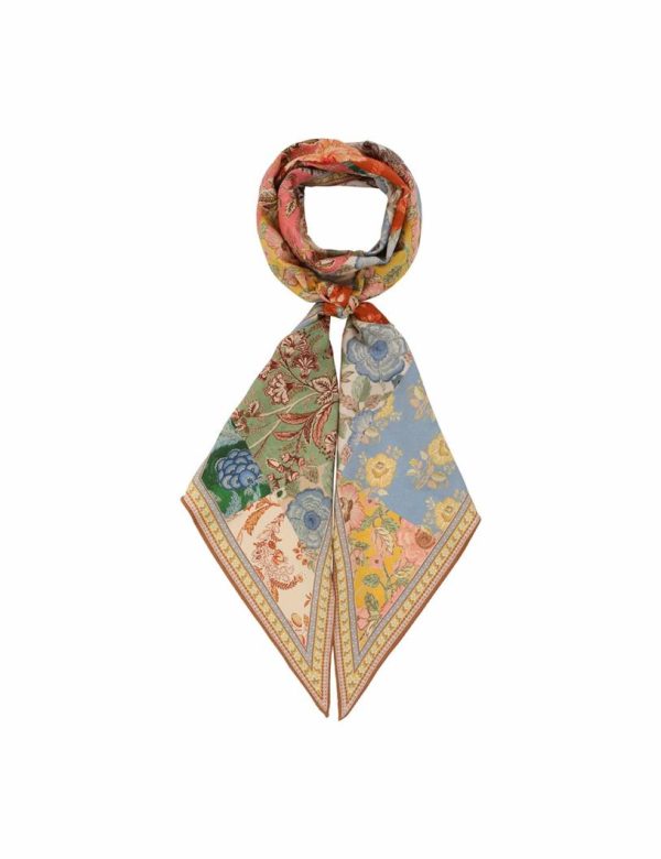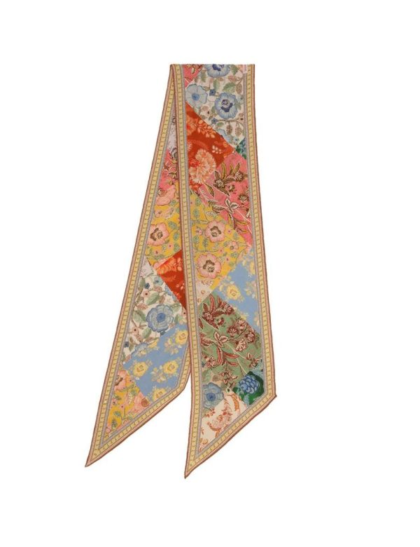 The Printed Silk Neck Scarf in Patch Floral from our Resort 2024 Collection, Matchmaker. A silk neck scarf featuring a customised placement print and fine rolled hem.