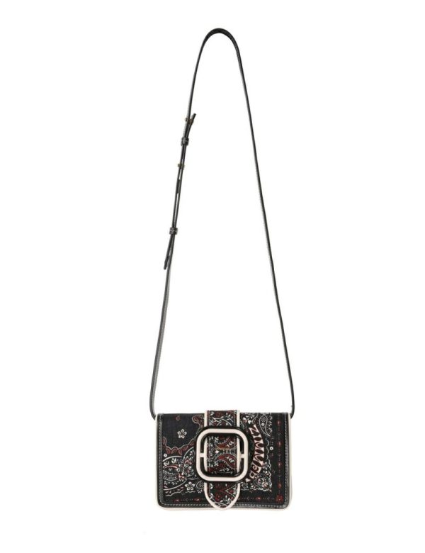 The Printed Small Cross Body Bag in Black Bandana from our Resort 2024 Collection, Matchmaker. A small linen cross body bag featuring a buckle front design and an internal card pocket.