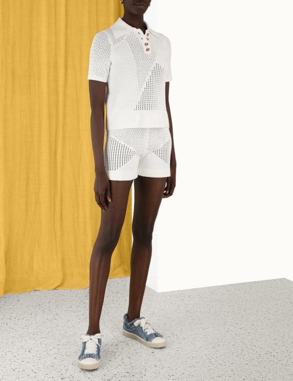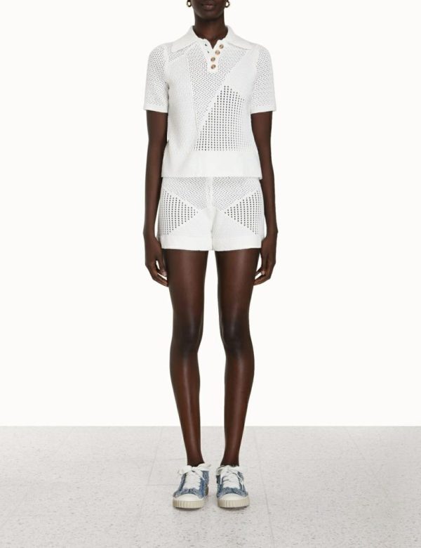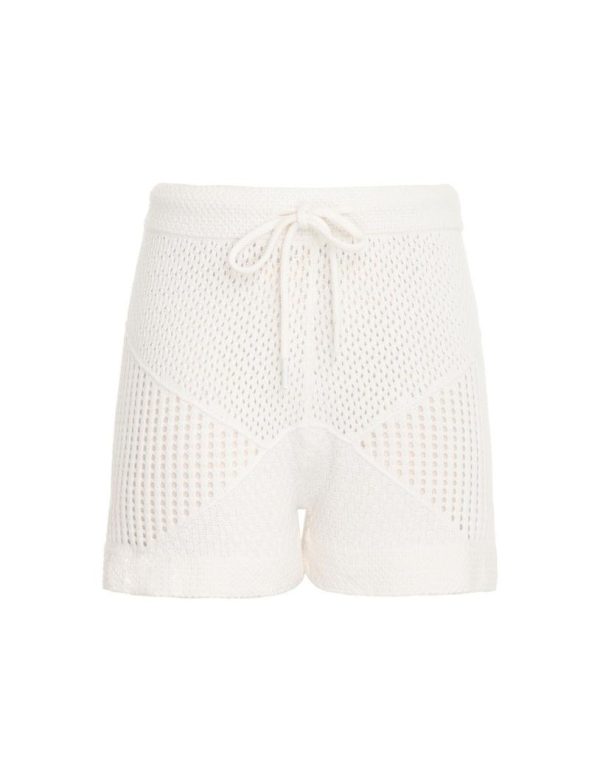 The Raie Mesh Knit Shorts in White from our Summer Swim 2023 Collection. A knitted short featuring waist ties.