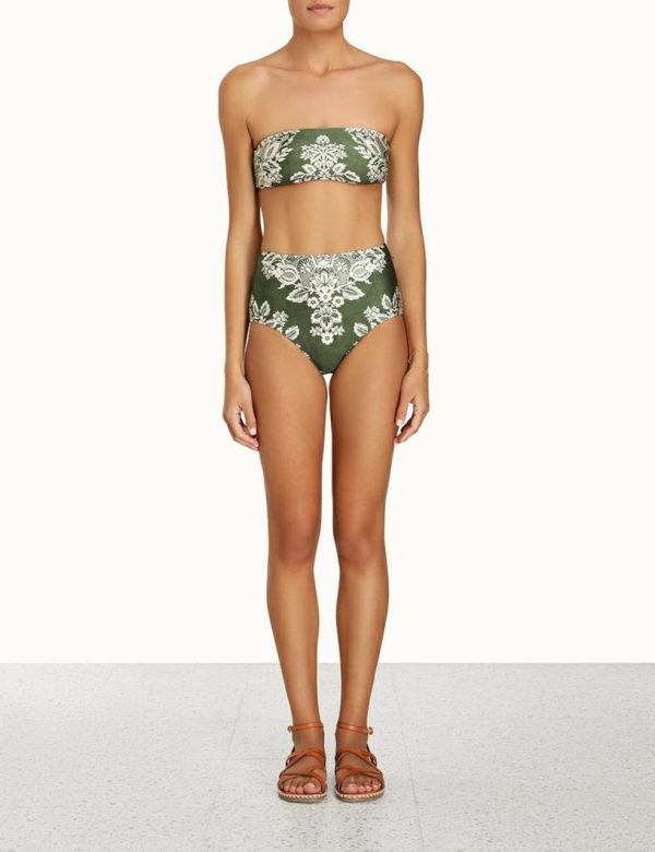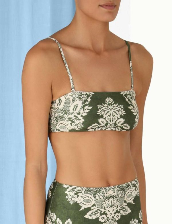 The Separates Bandeau Bra in Khaki/Cream from our Summer Swim 2023 Collection. This bandeau bikini top is constructed from Italian lycra, featuring a placement print throughout.