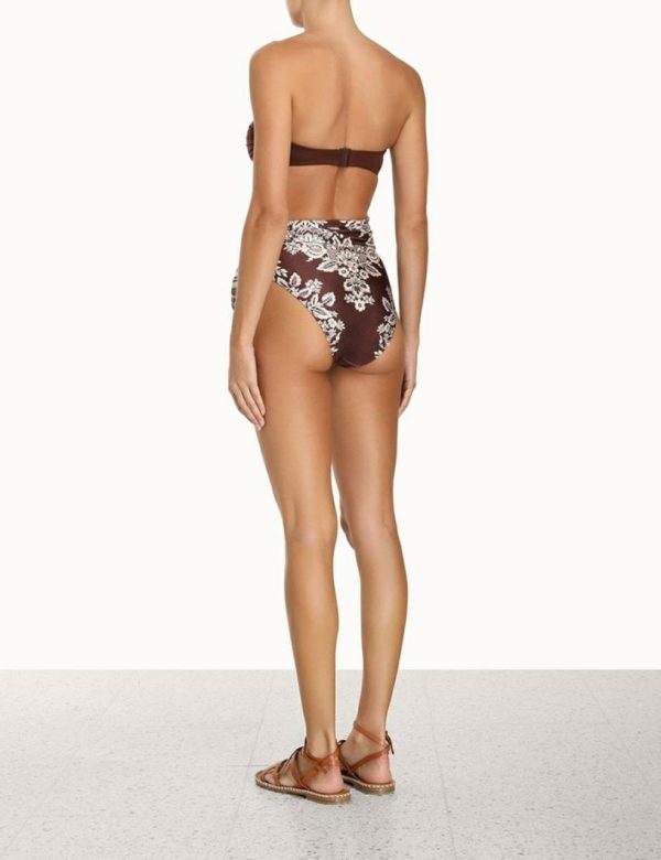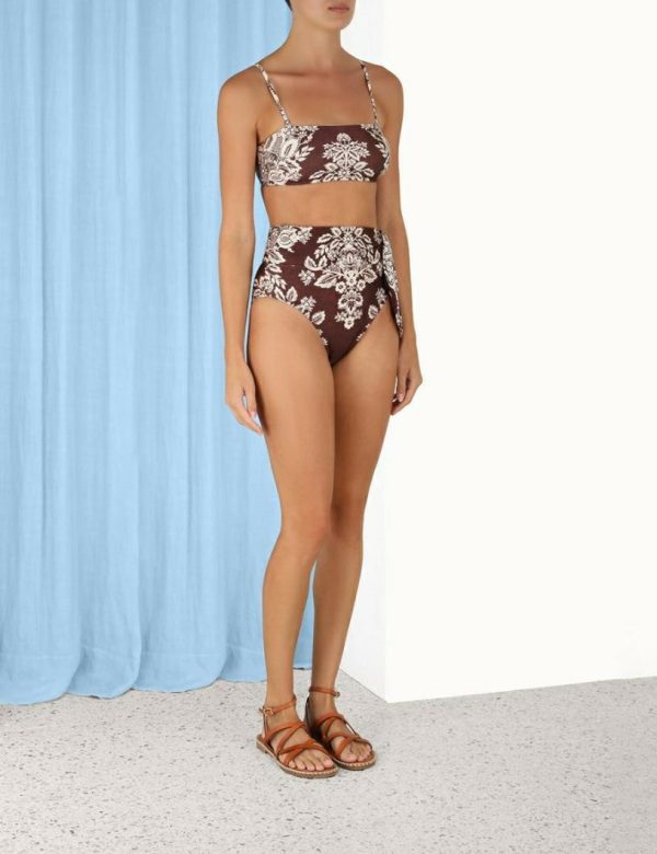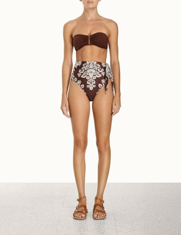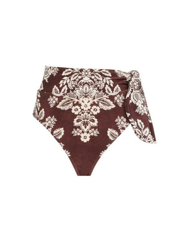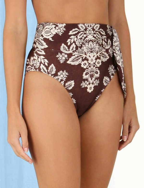 The Separates Scarf HW Pant in Chocolate/Cream from our Summer Swim 2023 Collection. A high waisted bikini pant constructed from Italian lycra featuring a self-tie detail at the side waist.