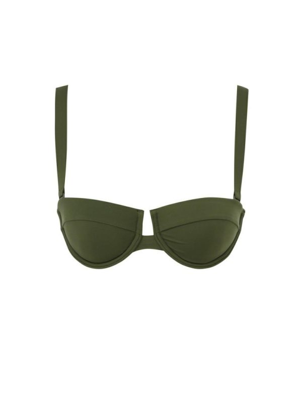 The Separates Sculpt Balconette in Khaki from our Resort Swim 2024 Collection. A balconette bandeau bikini top constructed from form-fitting Italian lycra.