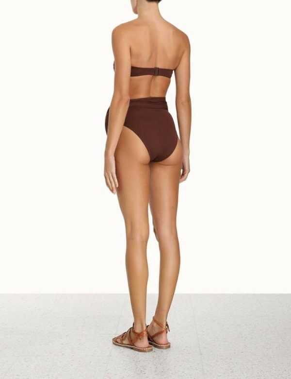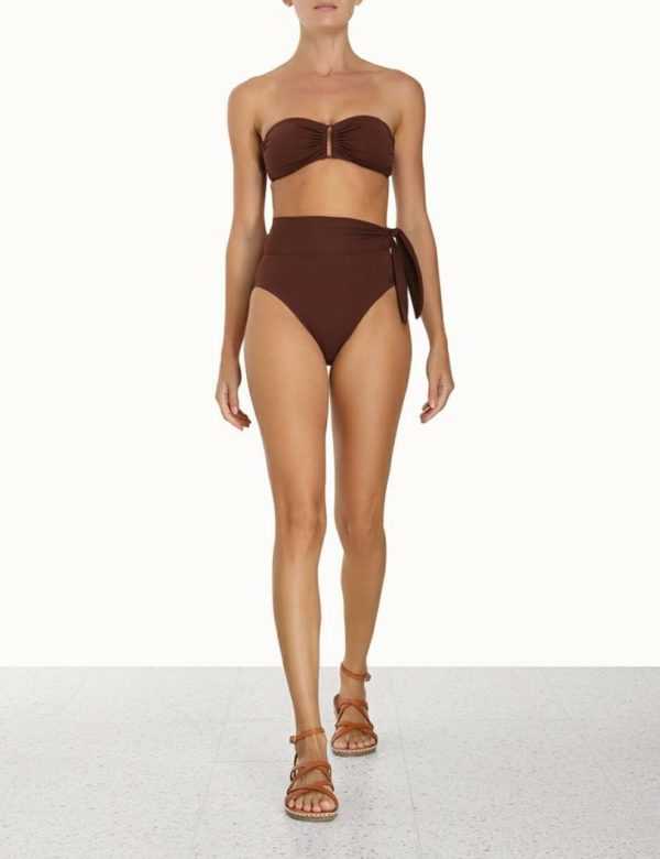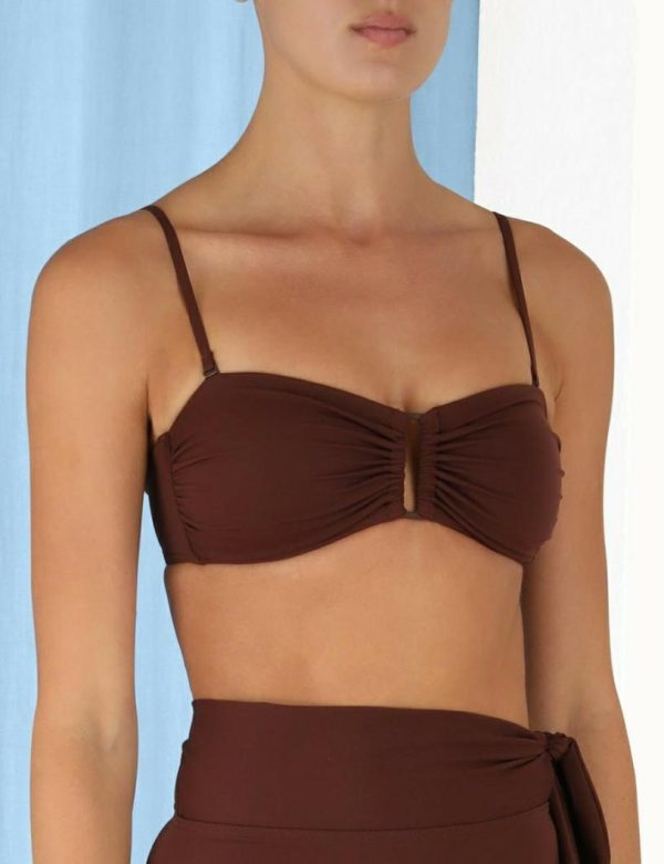 The Separates Sculpt Wide Link Bra in Chocolate from our Summer Swim 2023 Collection. A bandeau bikini top constructed from form-fitting Italian lycra, designed to sculpt and shape the body.