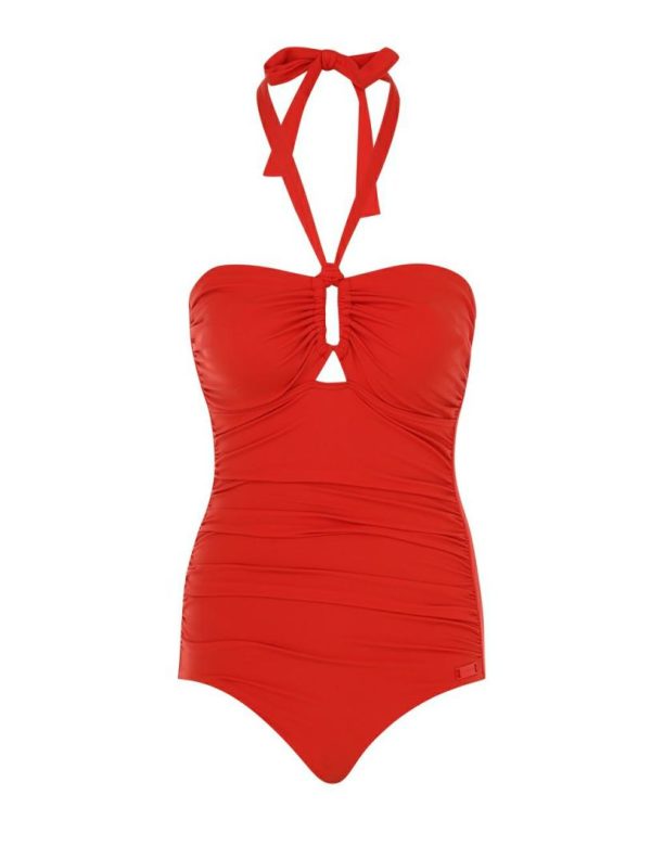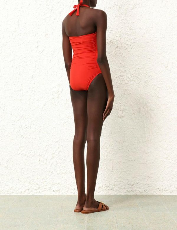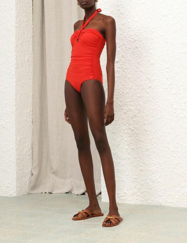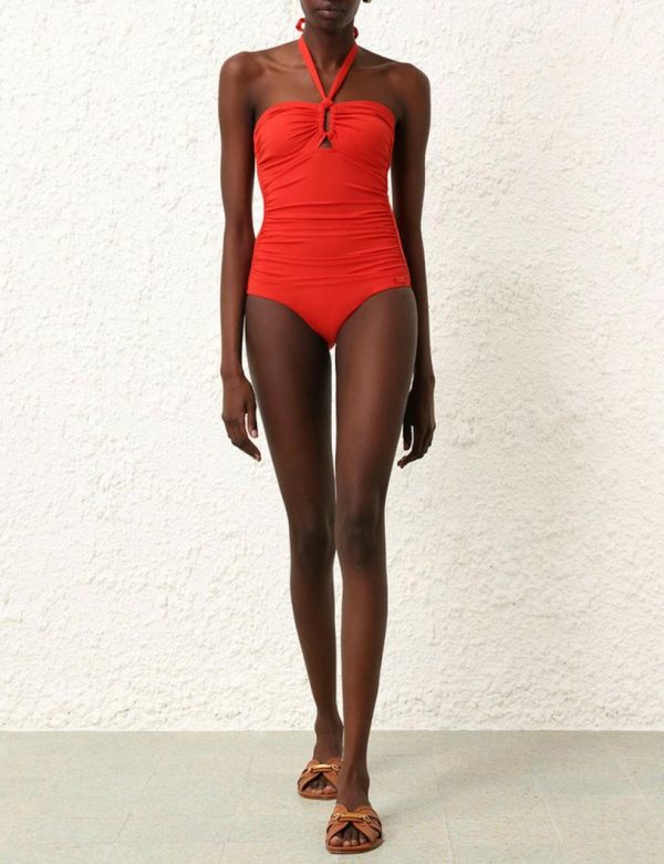The Separates Sculpt Wide Link 1PC in Red from our Resort Swim 2024 Collection. A halter neck one piece with ruched sides and wide link detail at centre bust.